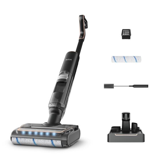 سعر الوحدة لكلTackle any kind of wet and dry mess—with automatic dirt detection mode and a roller always cleaning with fresh water .A 180° flat design to go under furniture, with LEDs to illuminate hidden dirt and a slim-edge brush for spotless cleaning